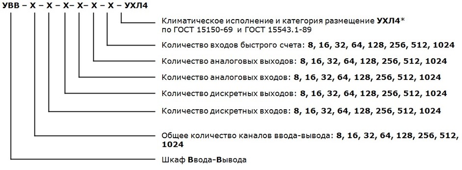 | Тип шкафа УВВ | Общее количество каналов ввода- |
